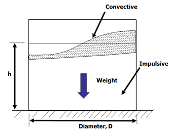 Seismic Design은 Liquid를 두 가지로 구분하여 Impulsive Force, Convective Force로 고려하여 계산.