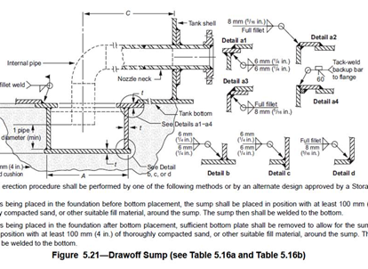 Storage Tank에 적용되는 Sump는 API650에 따라 Design 되어야 함.